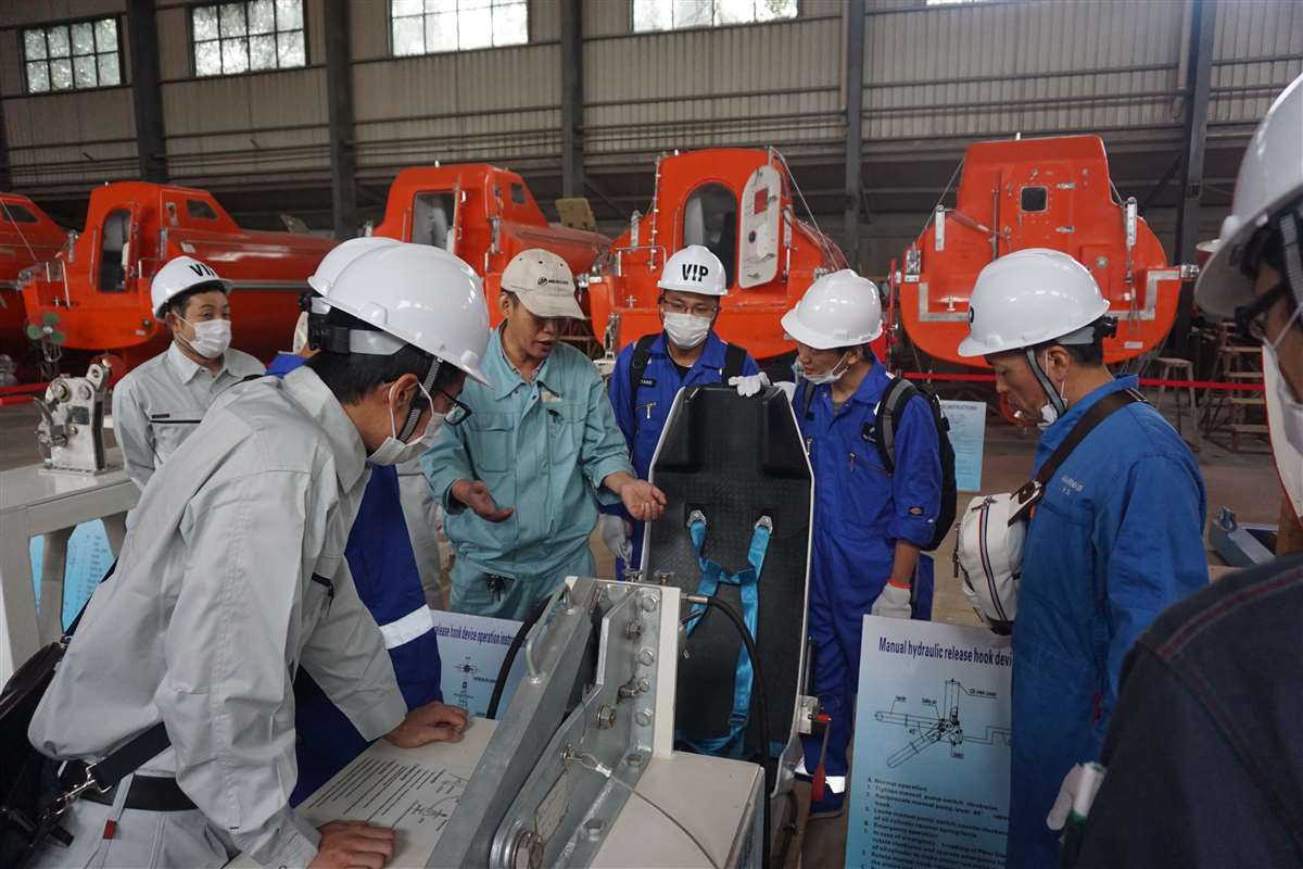11 ship service elite personnels from MANSEI INC/MARINAIR LIFERAFT CO., LTD/NISHI-NIPPON FUJIKURA CO., LTD/MOL ENGINEERING CO., LTD /SHIPGUARD INC  come to Jiangsu Jiaoyan Marine Equipment co., LTD, for the factory equipment of the new design and new product to carry on the deep study and training services, Become a excellent service of Jiaoyan's survival equipment, Supply better quality, more professional, more timely service to Jiaoyan's customers.